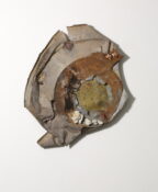 In 2007 I began making a series of small mixed media constructions to place on a “small works wall” at Gallery A3 (Amherst, MA) that was changed on a monthly basis. My goal was to consistently produce a new piece and to push the types of “reclaimed” material that I used in my vocabulary. All of the pieces are constructed from objects largely found on daily walks around town and on trips. Material or matter is simply a color/texture. Sometimes pigment is added as part of the dialogue with the material. These selections are part of this series.